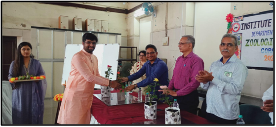 Additionally, the freshers were given a guided tour of the Institute, acquainting them with the classrooms, laboratories, library, and other essential facilities. Senior students shared their experiences, offering tips on academics, research opportunities, and overall campus life.The program concluded with a lunch gathering, where faculty members and students interacted in a relaxed setting, fostering camaraderie and a sense of belonging among the new batch. The event successfully set a positive tone for the academic year, ensuring that the freshers felt welcomed and motivated to embark on their journey in zoology.